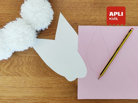 Dessine la forme de l'oreille du lapin sur le carton/mousse blanc, découpe-la et utilise-la comme gabarit afin que les deux oreilles soient symétriques.