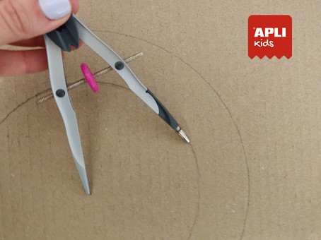 Pour cela, tu auras besoin de carton, d'un compas et de ciseaux. Tu peux utiliser deux plaques de tailles différentes. Dessine un cercle dans le carton d'environ 27 cm et un autre cercle au centre d'environ 17 cm.