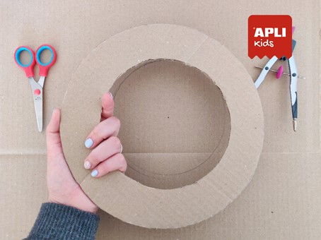 Découpe les cercles, en obtenant un anneau d'environ 5 centimètres d'épaisseur. Si tu as du mal à couper le carton avec des ciseaux, utilise un scalpel ou un cutter avec l'aide d'un adulte. Garde le cercle en carton pour plus tard.