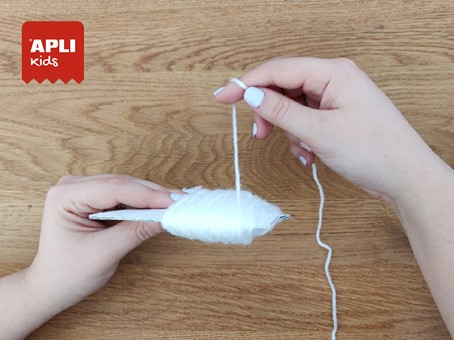 Répète cette étape autant de fois que tu as besoin de pompons. Pour la réalisation de cette guirlande, tu auras besoin de 10 à 12 pompons.