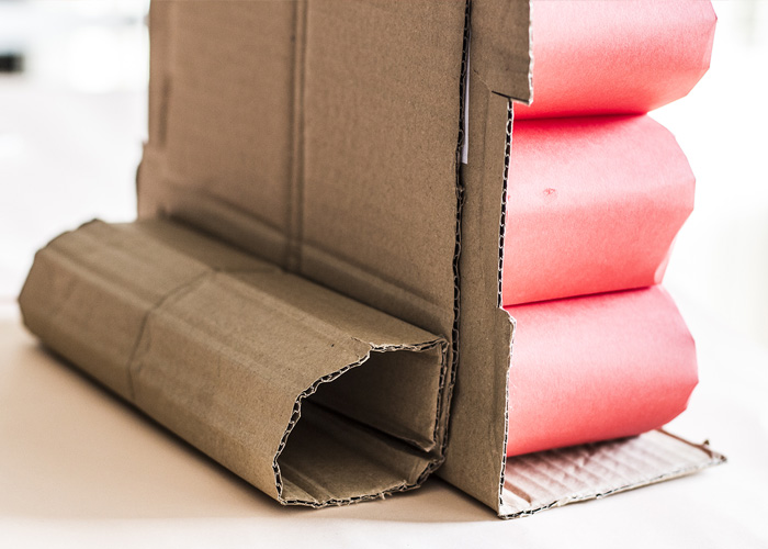 Étape 4 : Joignez les deux extrémités des feuilles de carton et collez les cylindres au carton, préalablement découpé aux dimensions approximatives de 42 cm de long sur 28 cm de large.