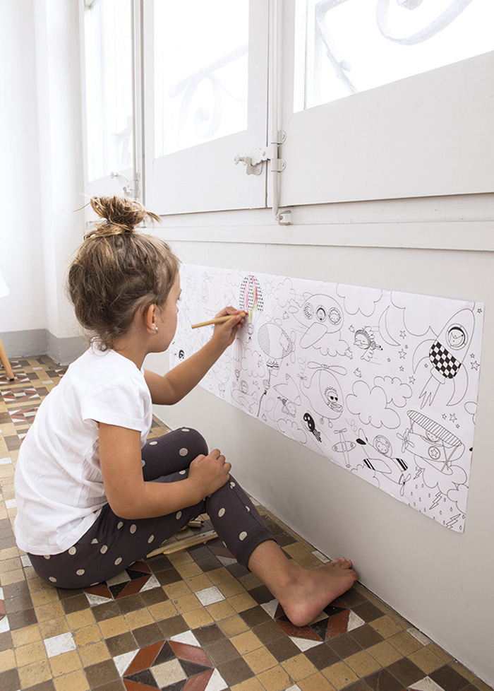 Déroulez un rouleau de papier blanc sur le sol, suffisamment long pour que vos enfants puissent s'assoir en plein milieu et marcher dessus librement. De quoi réaliser une toile de maître ! Donnez-leur un concept abstrait (l'amitié, la liberté, l'amour, etc.) et encouragez-les à l'illustrer à l'aide différents types de peintures, textures et matériaux. Dans la rubrique APLI Kids, nous proposons des rouleaux de peintures des tampons, des éponges ou encore des pastels gras parfaits pour ce type d'activité. Nous proposons également des rouleaux adhésifs de 4 mètres de long à colorier. Avec différents dessins selon les thématiques (le monde marin, la forêt enchantée, les transports, etc.) si vous voulez une activité plus cadrée. Idéal pour décorer sa chambre cet été !