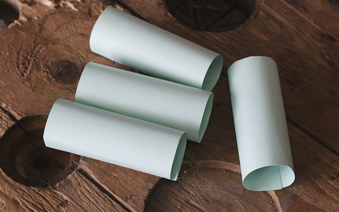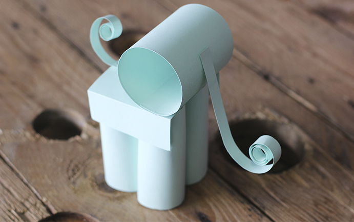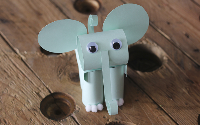 Enroule les papiers sur eux-mêmes et colle-les. Ces rouleaux représenteront les pattes de l’éléphant.