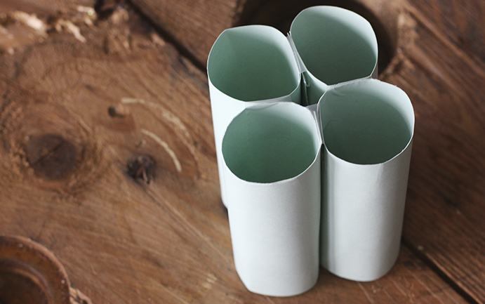 Pose les rouleaux verticalement et assemble-les solidement entre eux avec du ruban adhésif.