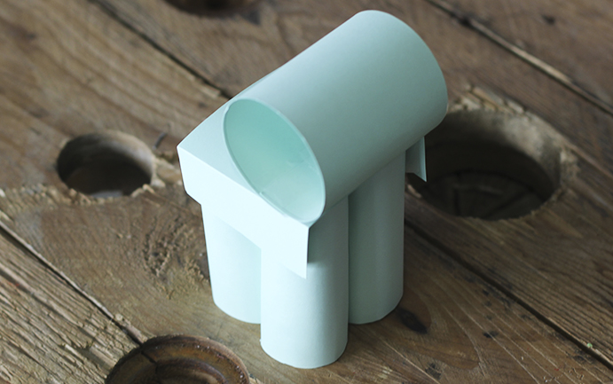 Maintenant, fais une base pour maintenir les pattes et superposer la tête. Pour cela, enroule un autre papier de même longueur mais un peu plus large cette fois-ci, ce sera la tête de ton éléphant. Une fois que tu as la tête, tu peux la coller à la base.