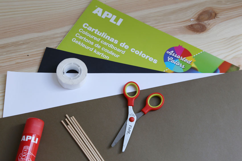 Coller une baguette au dos de la feuille cartonnée avec le ruban adhésif… Et voilà, le premier accessoire est terminé !