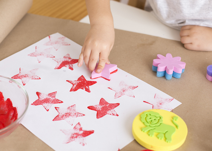 Les formes et les couleurs que les petits utilisent pour peindre les aident à s’exprimer sans avoir à utiliser de mots. Il est important d’utiliser des outils adaptés aux enfants, pour les encourager à peindre, comme les tampons en éponge jumbo. Avec ces tampons, les enfants pourront dessiner en tamponnant les formes sur la toile à l’aide de peinture et faire leurs premiers pas dans le monde de l’art.