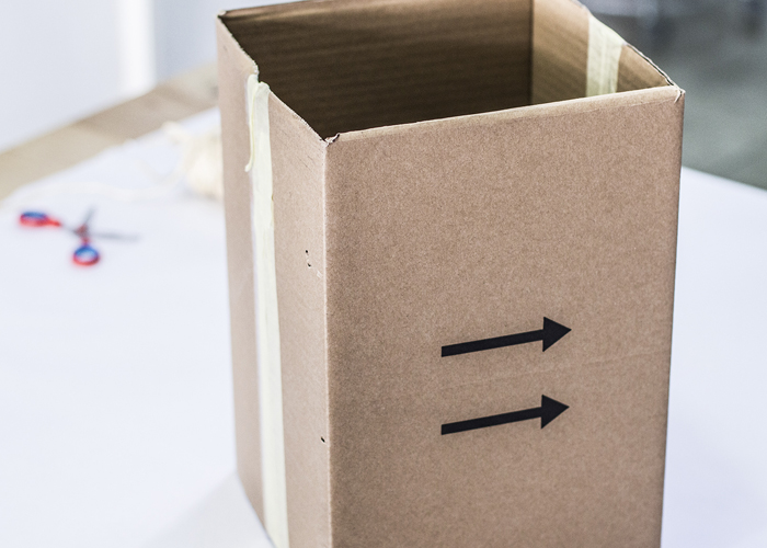 Prenez un carton et placez-le sur la plus petite tranche. Avec une paire de ciseaux ou un cutter, retirez la partie du dessus. Assurez-vous que les parties latérales du carton restent bien fermées en utilisant du ruban adhésif si nécessaire.