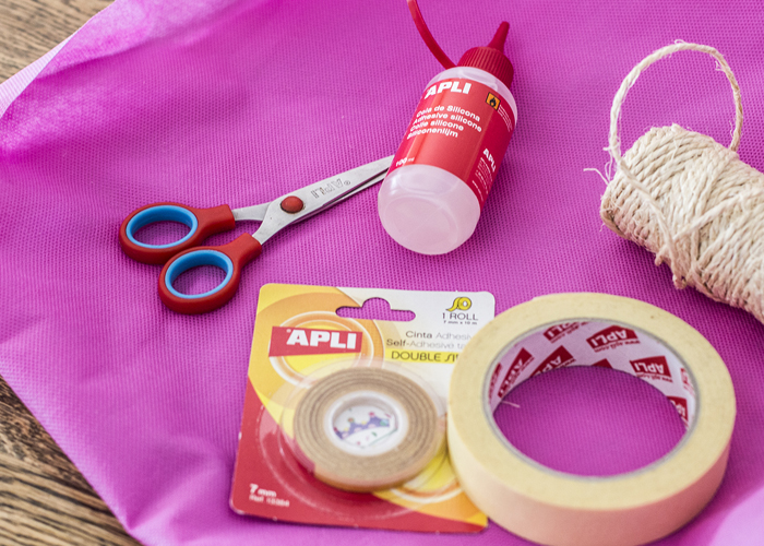 Pour coller les deux pièces, utilisez le ruban adhésif double face APLI. Vous pouvez aussi les coudre si vous avez le temps et l'envie.