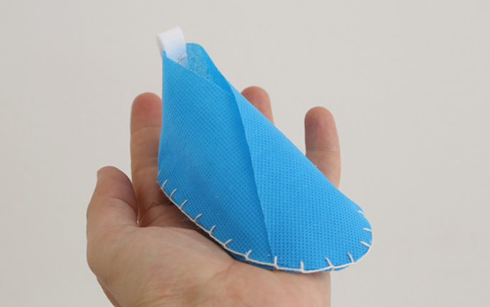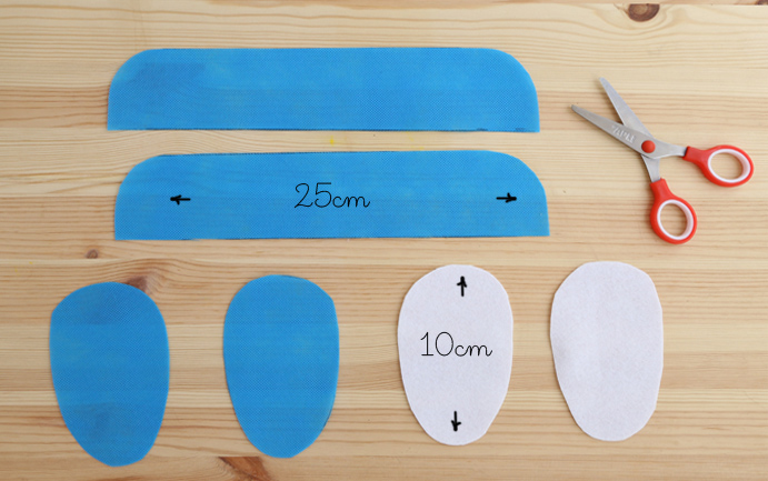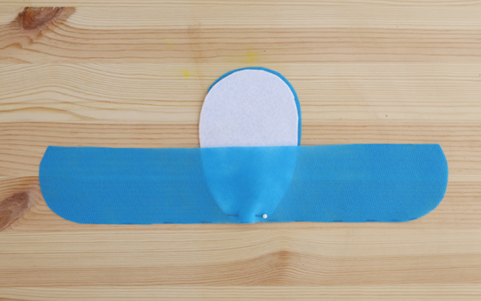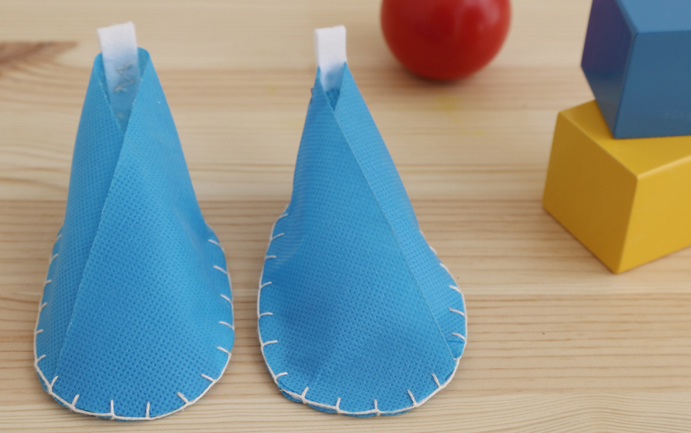 Placez les formes comme le montre l’image pour monter le premier chausson. La feutrine blanche donnera une touche de douceur au pied.