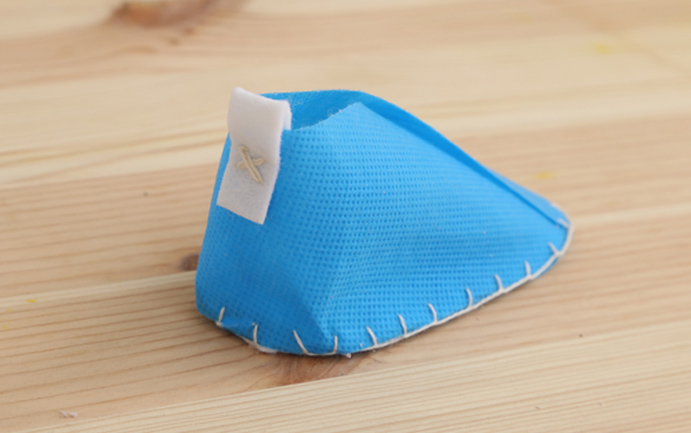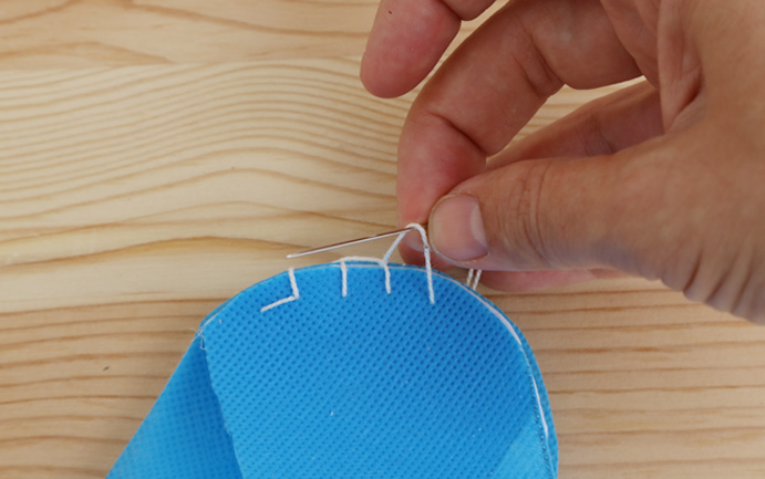 Fermer le devant en repliant les deux extrémités et maintenez-les avec une aiguille.