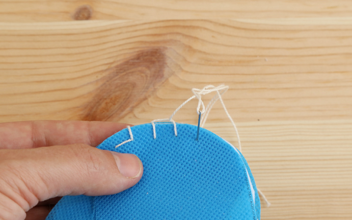 Prenez le fil et l’aiguille et commencez par coudre les trois couches. Ici, nous montrons les étapes pour faire ce genre de point qui sera très utile aussi dans de nombreuses activités. Il est très simple et vous n’avez pas besoin de machine à coudre.