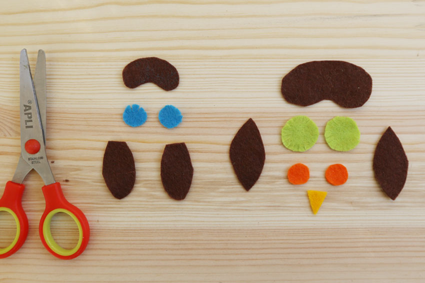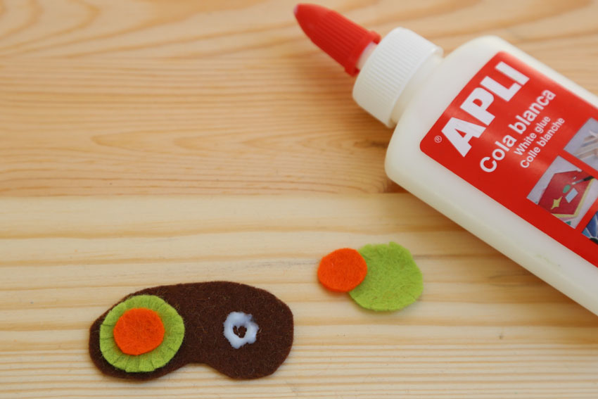 Pour terminer le visage, mettre une pointe de colle sur chaque œil et coller.