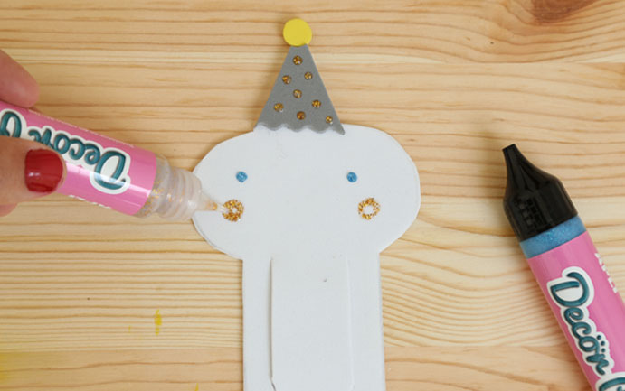 Peins les yeux, les joues et le chapeau avec les Décor pen.