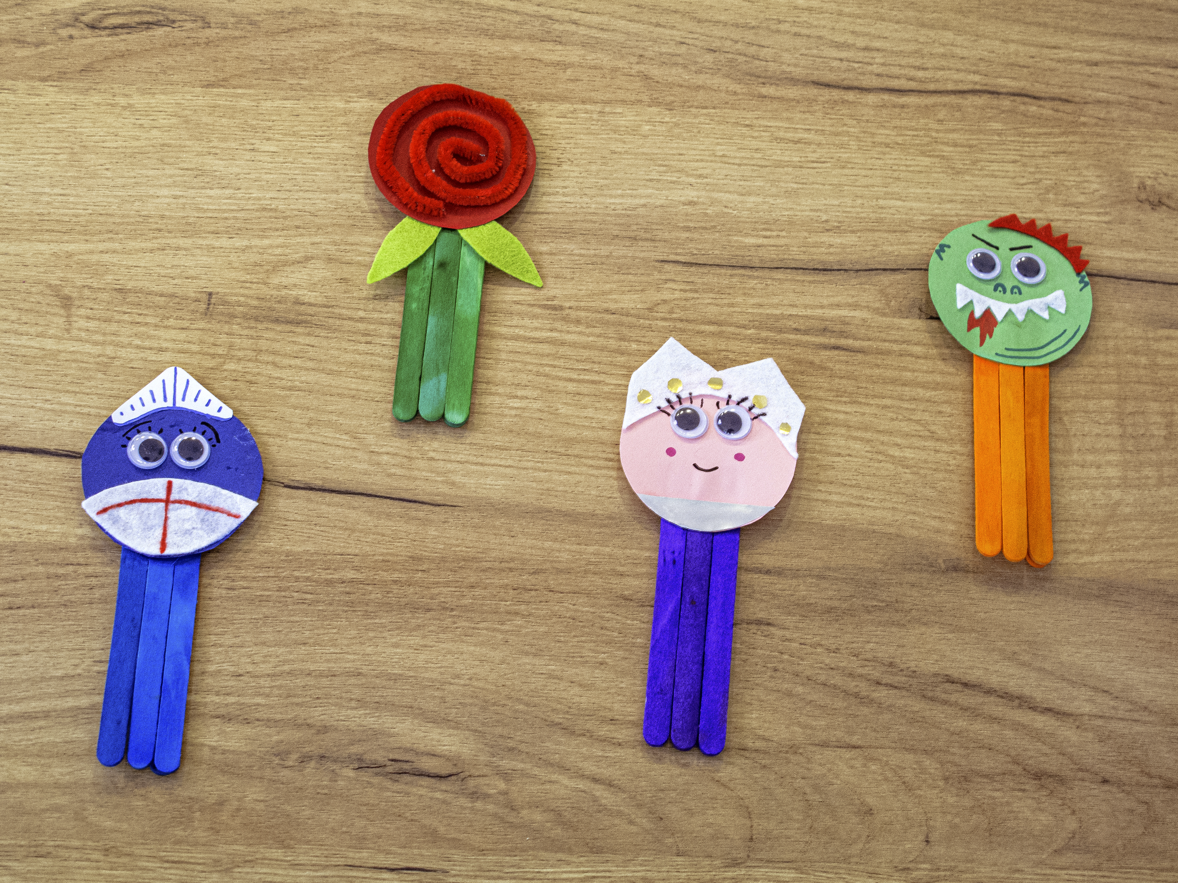 2. Collez les cercles décorés sur le haut des bâtonnets en bois avec de la colle blanche et… le tour est joué !