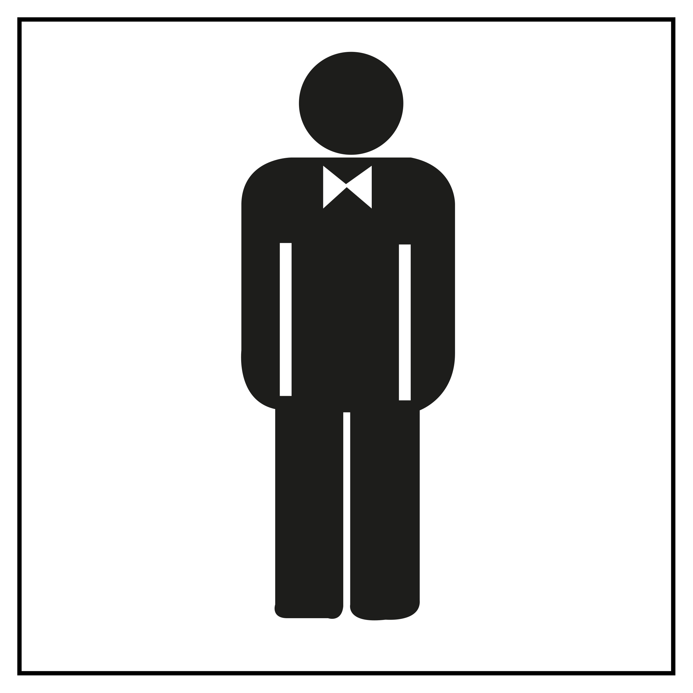 Etiquette de signalisation « Toilettes homme » en PVC, dimension 114 x 114 mm avec un adhésif permanent. S'applique sur toute surface lisse, y compris le verre, les fenêtres, les portes, les carreaux de cuisine et de salle de bain, ainsi que le métal, etc.