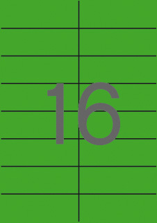 Etiquettes vert coins droits dimension 105,0 x 37,0 mm avec un adhésif permanent. Paquet de 20 feuilles (320 étiquettes).