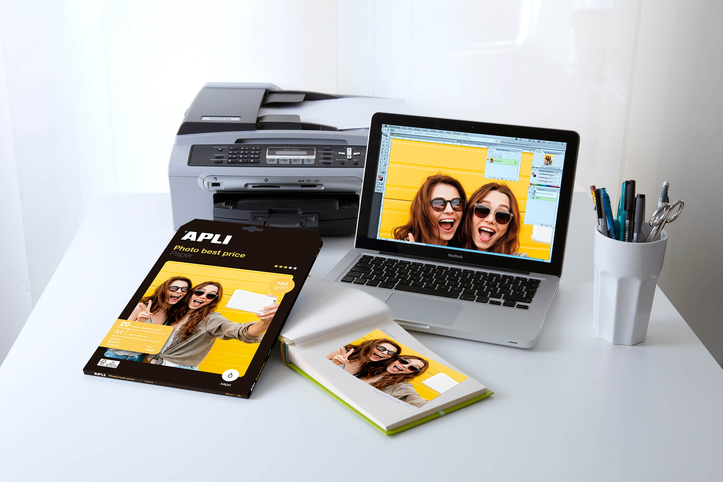 Papier photo Photobasic format A4. Papier de 135 g/m² avec finition brillante. Chaque paquet contient 20 feuilles.