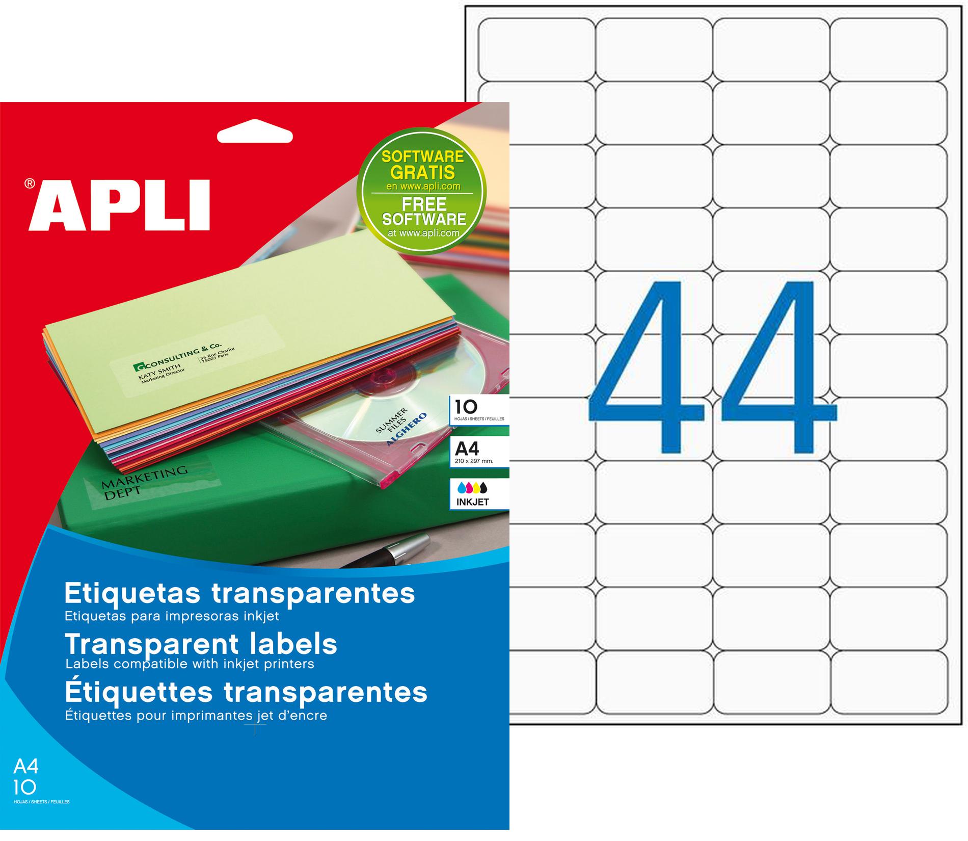 Étiquettes transparentes avec une finition brillante, quasi-invisibles, idéales si vous avez besoin d’appliquer une étiquette sur des enveloppes de couleur ou de surligner et signaler sans cacher la surface où l’étiquette est collée. Excellente qualité d’impression aux imprimantes ink jet .