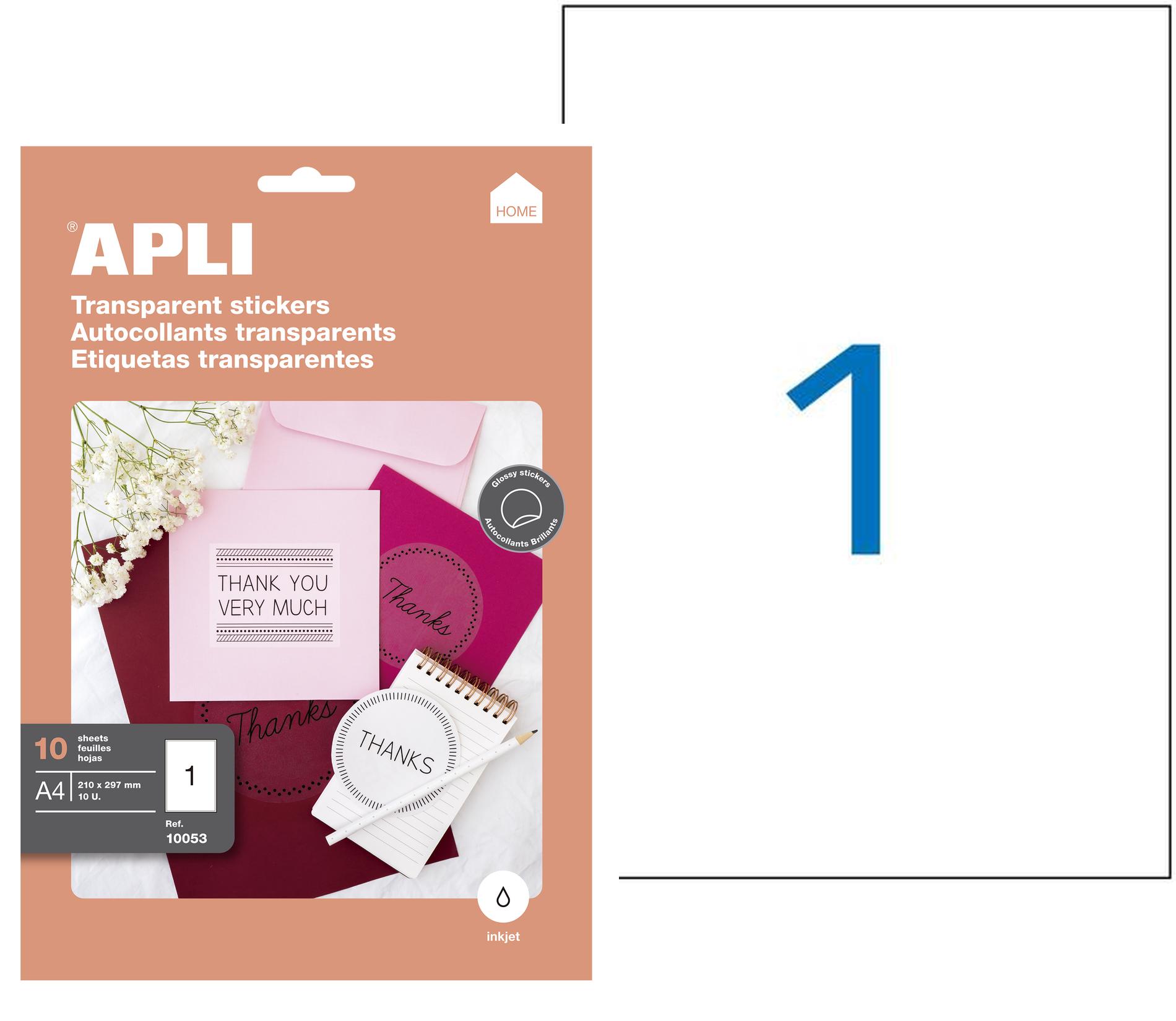 E transparentes coins droits dimensions 210,0 x 297,0 mm avec un adhésif permanent. Paquet de 10 feuilles (10 étiquettes).