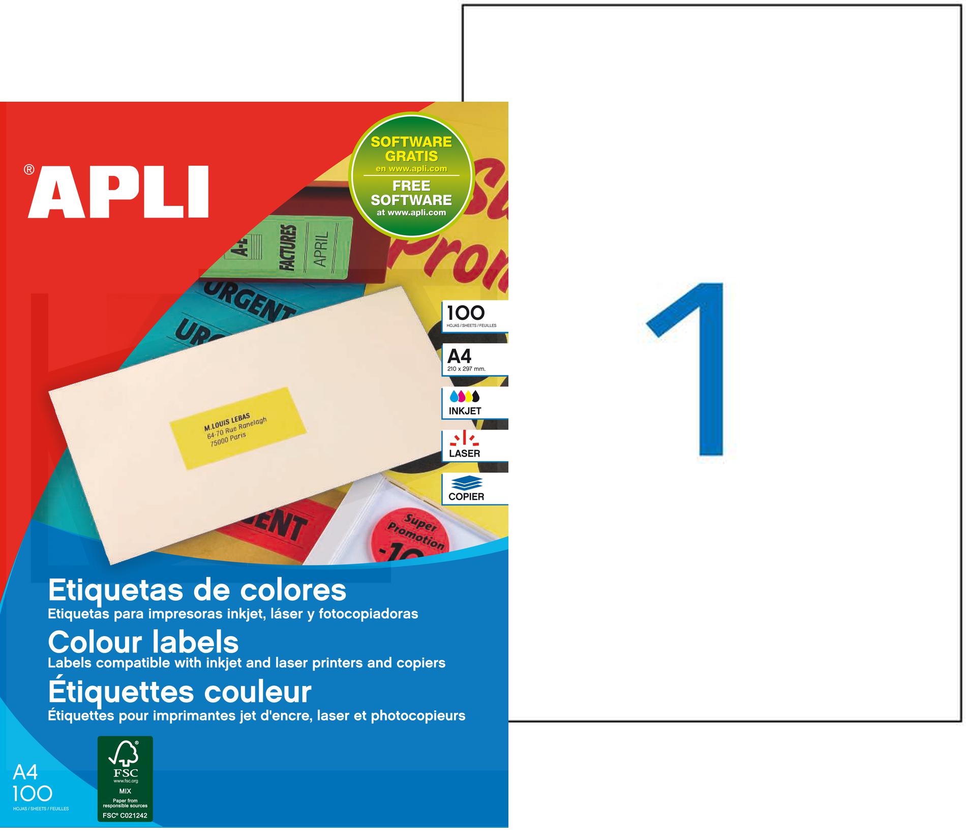 Étiquettes rouges multi-usage aux bords droits dimensions 210,0 x 297,0 mm avec un adhésif permanent. Paquet de 100 feuilles (100 étiquettes). DE QUALITÉ : Les étiquettes Apli sont fabriquées avec un papier de qualité certifié FSC. PRATIQUES : Grâce à leur adhésif résistant aux hautes températures, les étiquettes multi-usages Apli Agipa sont anti-bourrage. Pour vous, ce sera un gain de temps et de papier conséquent. COMPATIBLES : Les étiquettes à imprimer Apli Agipa sont compatibles avec les impressions laser, copieur et jet d’encre. Elles sont réalisées en France avec toute l’expérience d’Apli. FACILES : Tous les formats de nos étiquettes sont présents dans notre logiciel gratuit Agipa Soft Pro, pour vous permettre une personnalisation rapide et aisée. Parfaites pour identifier des envois par courrier, des objets, des colis ou pour classer les documents. Excellente qualité d’impression aux imprimantes ink jet, laser ou copieurs. Téléchargez le logiciel gratuit pour créer et imprimer tout type d’étiquette sur www.apli.fr