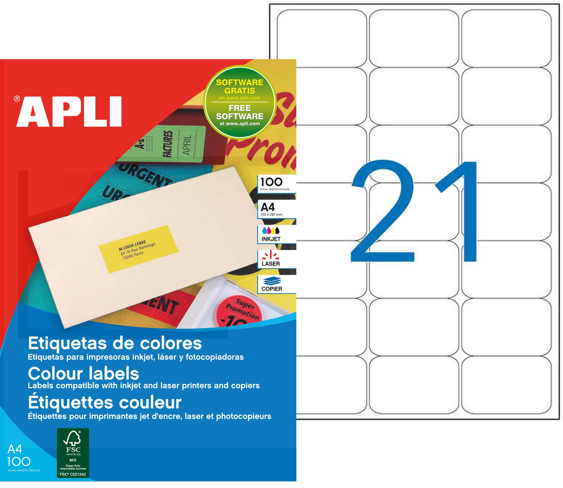 Étiquettes rouges multi-usage aux bords arrondis dimensions 63,1 x 38,1 mm avec un adhésif permanent. Paquet de 100 feuilles (2 100 étiquettes). DE QUALITÉ : Les étiquettes Apli sont fabriquées avec un papier de qualité certifié FSC. PRATIQUES : Grâce à leur adhésif résistant aux hautes températures, les étiquettes multi-usages Apli Agipa sont anti-bourrage. Pour vous, ce sera un gain de temps et de papier conséquent. COMPATIBLES : Les étiquettes à imprimer Apli Agipa sont compatibles avec les impressions laser, copieur et jet d’encre. Elles sont réalisées en France avec toute l’expérience d’Apli. FACILES : Tous les formats de nos étiquettes sont présents dans notre logiciel gratuit Agipa Soft Pro, pour vous permettre une personnalisation rapide et aisée. Parfaites pour identifier des envois par courrier, des objets, des colis ou pour classer les documents. Excellente qualité d’impression aux imprimantes ink jet, laser ou copieurs. Téléchargez le logiciel gratuit pour créer et imprimer tout type d’étiquette sur www.apli.fr