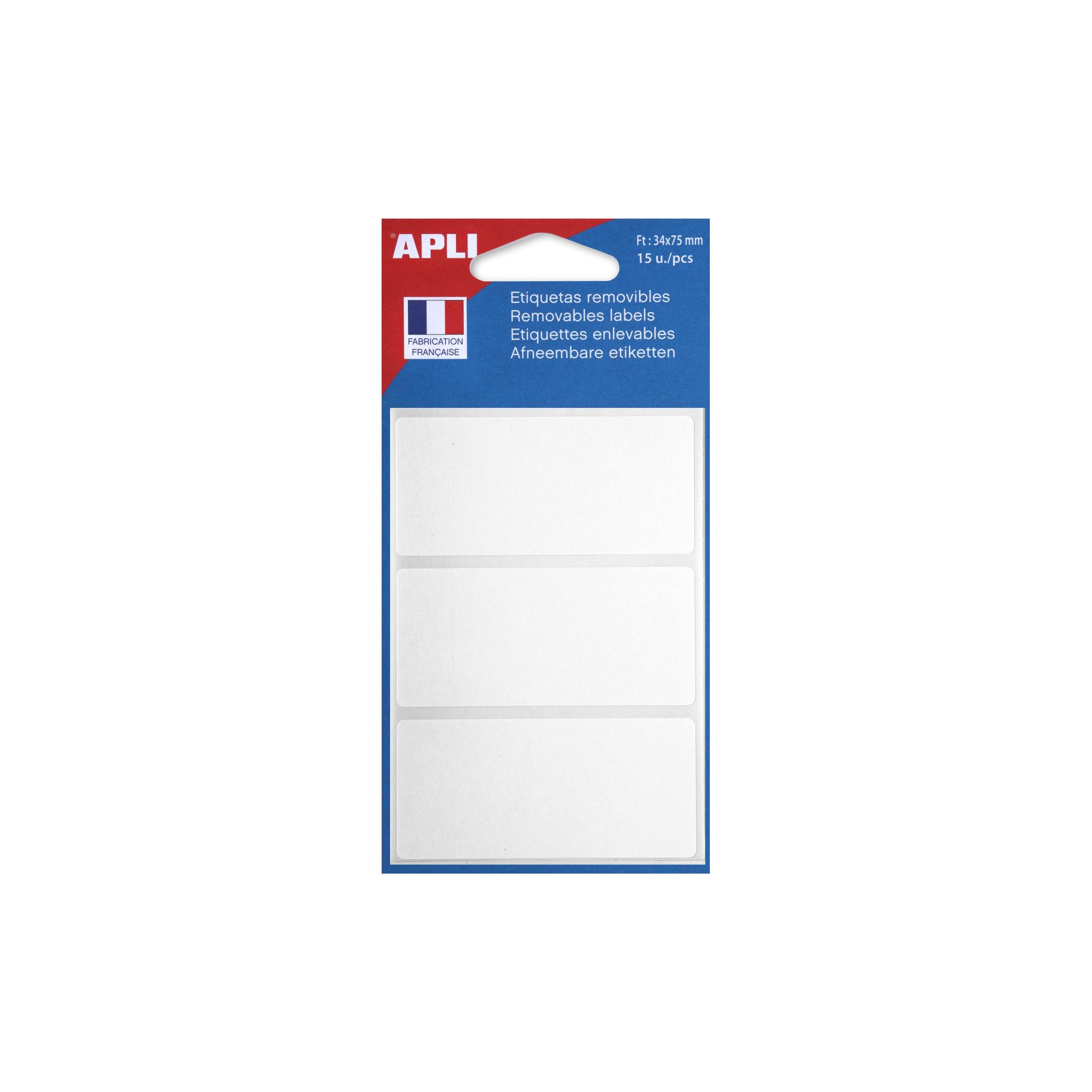 Pochettes de 5 feuilles de 15 étiquettes adhésives. Adhésif enlevable. L'étiquette peut être décollée sans laisser de trace sur le produit. Etiquetage rapide et efficace. Parfois, nous avons besoin d'un étiquetage rapide et efficace sans passer par l'imprimante. Pour cela APLI propose des étiquettes idéales pour y écrire avec un crayon, un stylo à bille (également à encre gel) ou un marqueur permettant un séchage rapide de l'encre. Certifiées FSC.