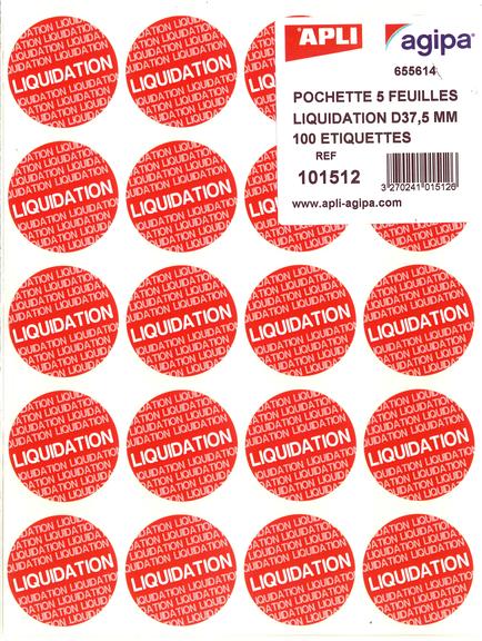 Étiquettes "Liquidation" Ø 37,5 mm 5 feuilles