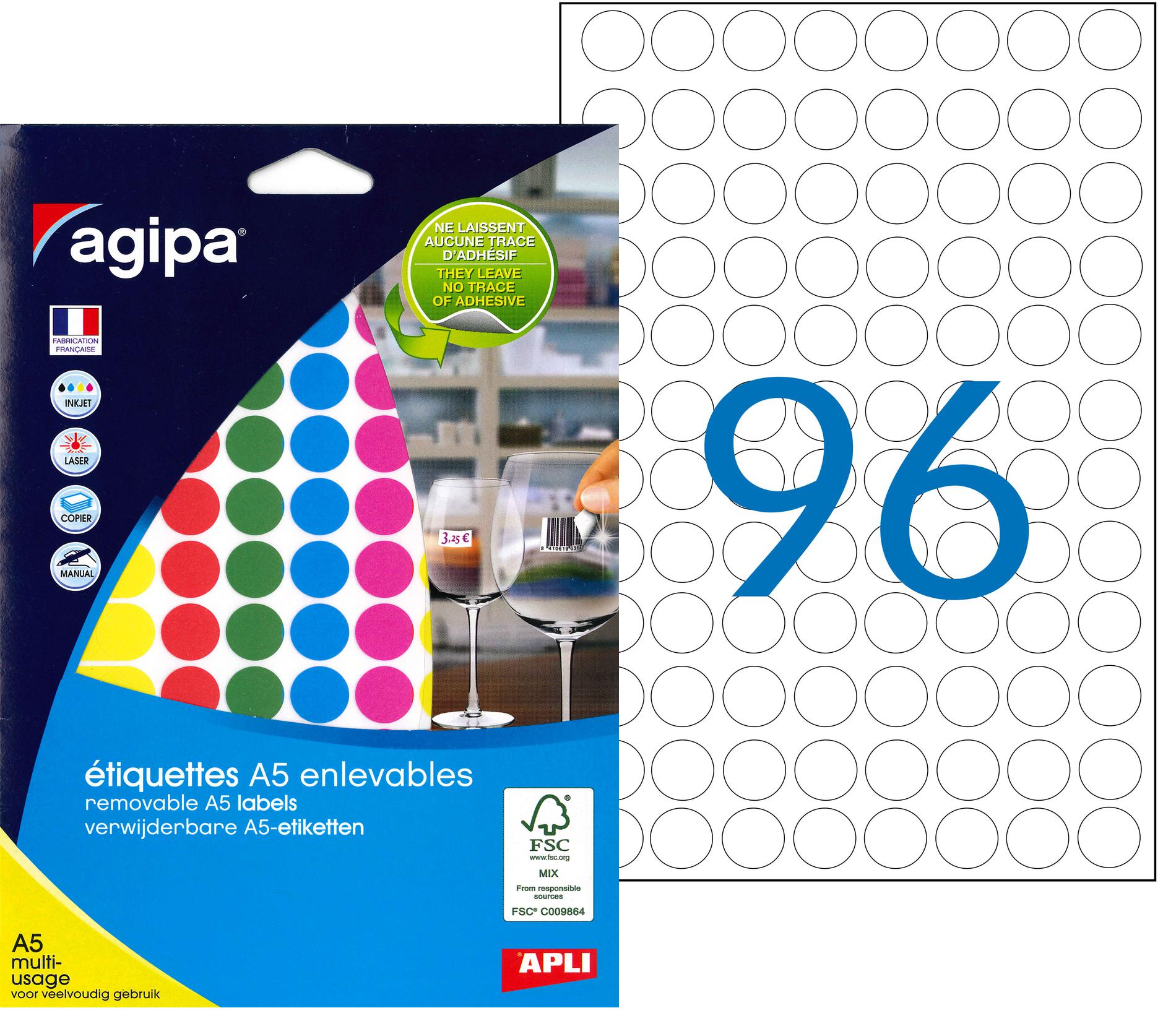 Pastilles couleurs assorties multi usage Ø 15 mm. Couleurs assorties : bleu, jaune, rose, vert, rouge. Pochette 6 feuilles A5 multi-usage soit 576 étiquettes. Adhésif enlevable. Étiquettes avec un adhésif enlevable qui permet de retirer l'étiquette sans laisser de traces. Leur utilisation est idéale si vous devez faire un étiquetage temporaire ou que l'étiquette doit être retirée. Par exemple : étiquettes prix.