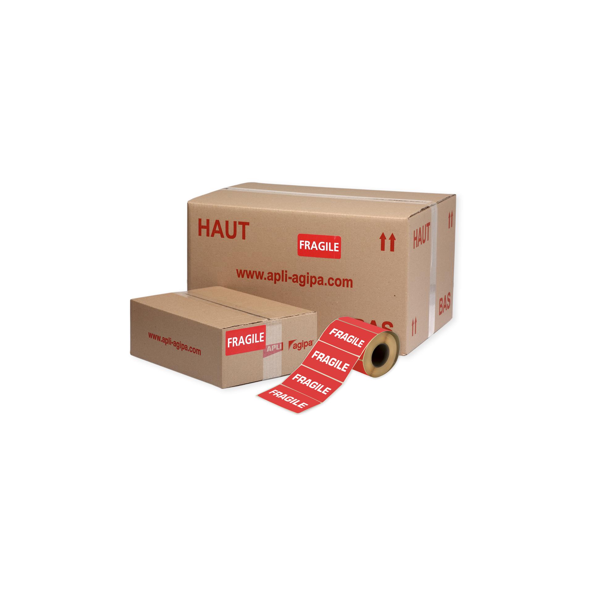 Rouleau de 500 étiquettes fragile (rouge impression blanche) 100x 50 mm. Lot de 2 rouleaux de 500 étiquettes. Pour l'étiquetage de vos cartons fragiles