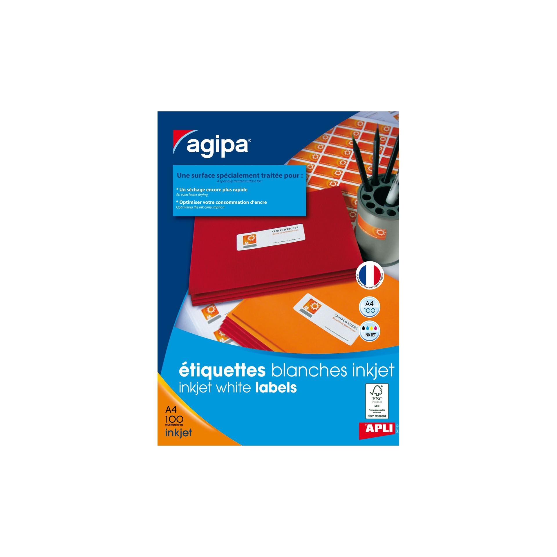 COMPATIBLES : Les étiquettes à imprimer Apli Agipa sont compatibles avec les impressions jet d’encre.