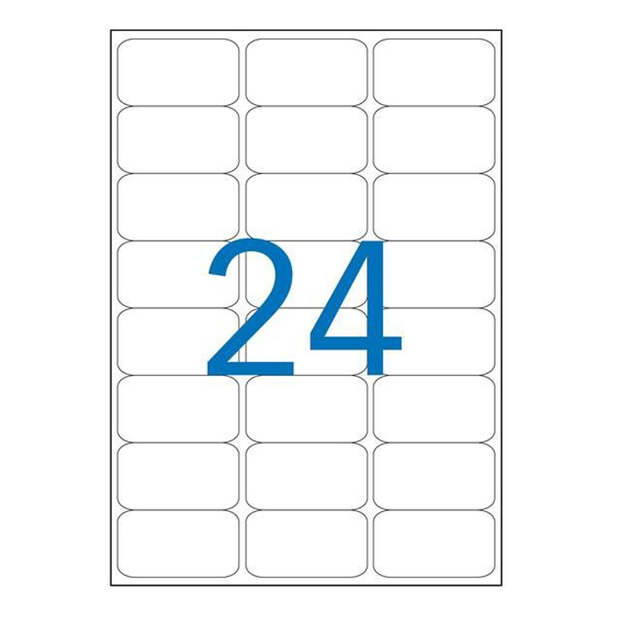 Étiquettes recyclées blanches multi-usage aux bords arrondis dimensions 63,5 x 33,9 mm avec un adhésif permanent. Paquet de 100 feuilles (2 400 étiquettes). INDISPENSABLES : Étiquettes adhésives en papier 100 % recyclé. Adhésif acrylique à base d'eau 100 % non polluant. Papier adhésif 100 % sans chlore certifié FSC.