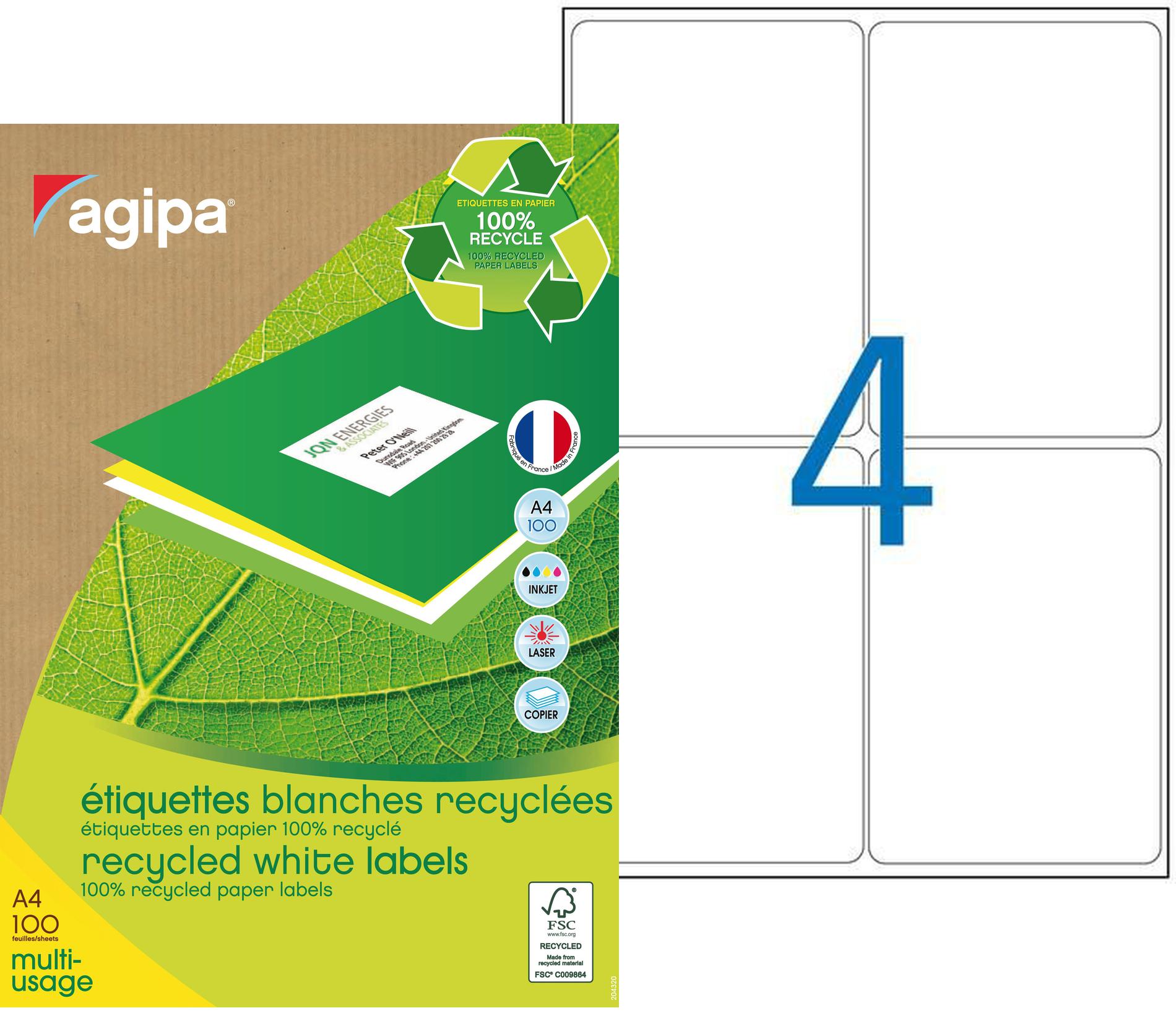 Étiquettes recyclées blanches permanentes 99,1 x 139 mm 100 feuilles