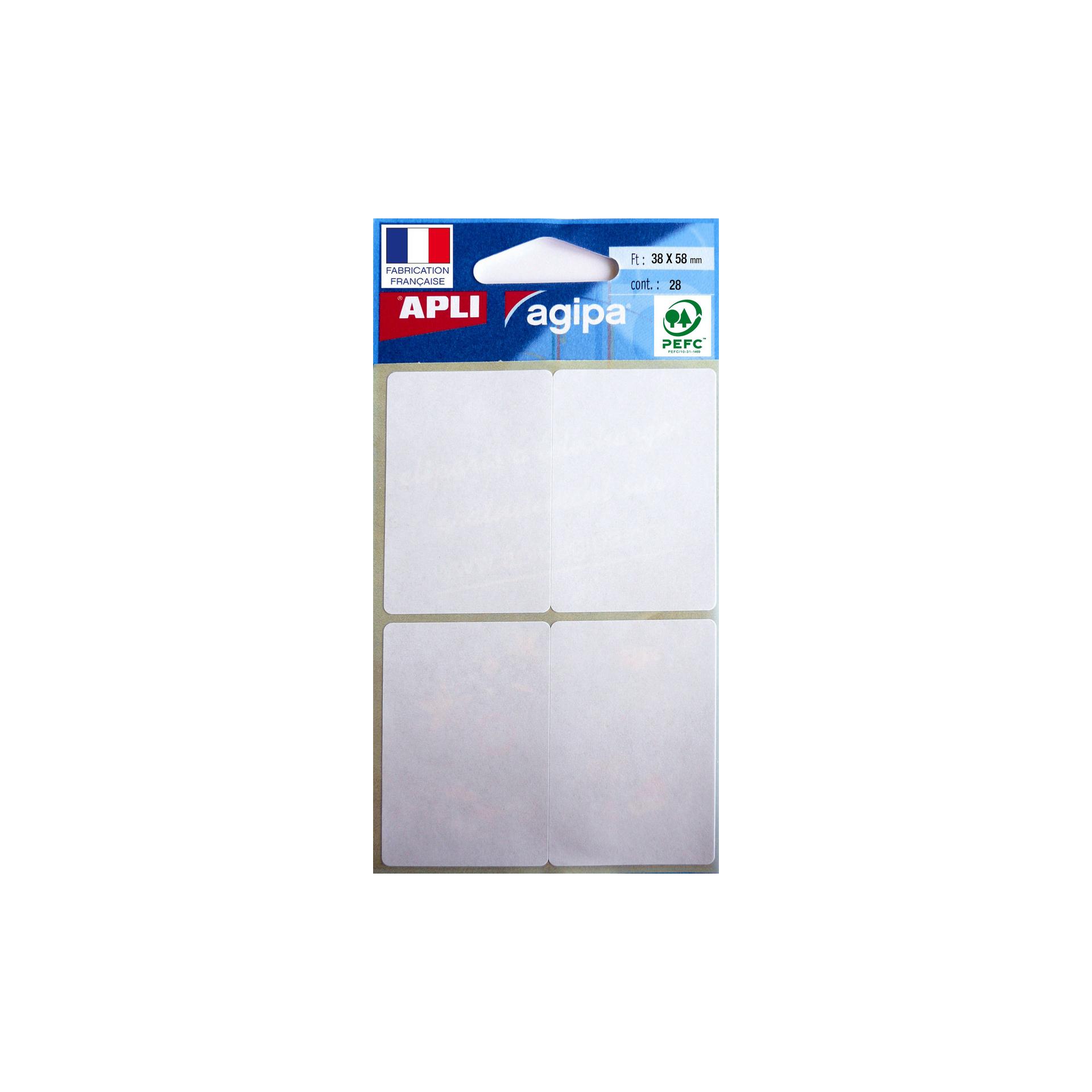 Étiquettes blanches bords arrondis adhésif permanent 38x 58 mm pour écriture manelle. Pochette de 28 étiquettes. Etiquetage rapide et efficace. Parfois , nous avons besoin d'un étiquetage rapide et efficace sans passer par l'imprimante. Pour cela, APLI propose des étiquettes idéales pour y écrire avec un crayon, un stylo bille (également à encre gel) ou un marqueur permettant un séchage rapide de l'encre. Certifitées FSC.
