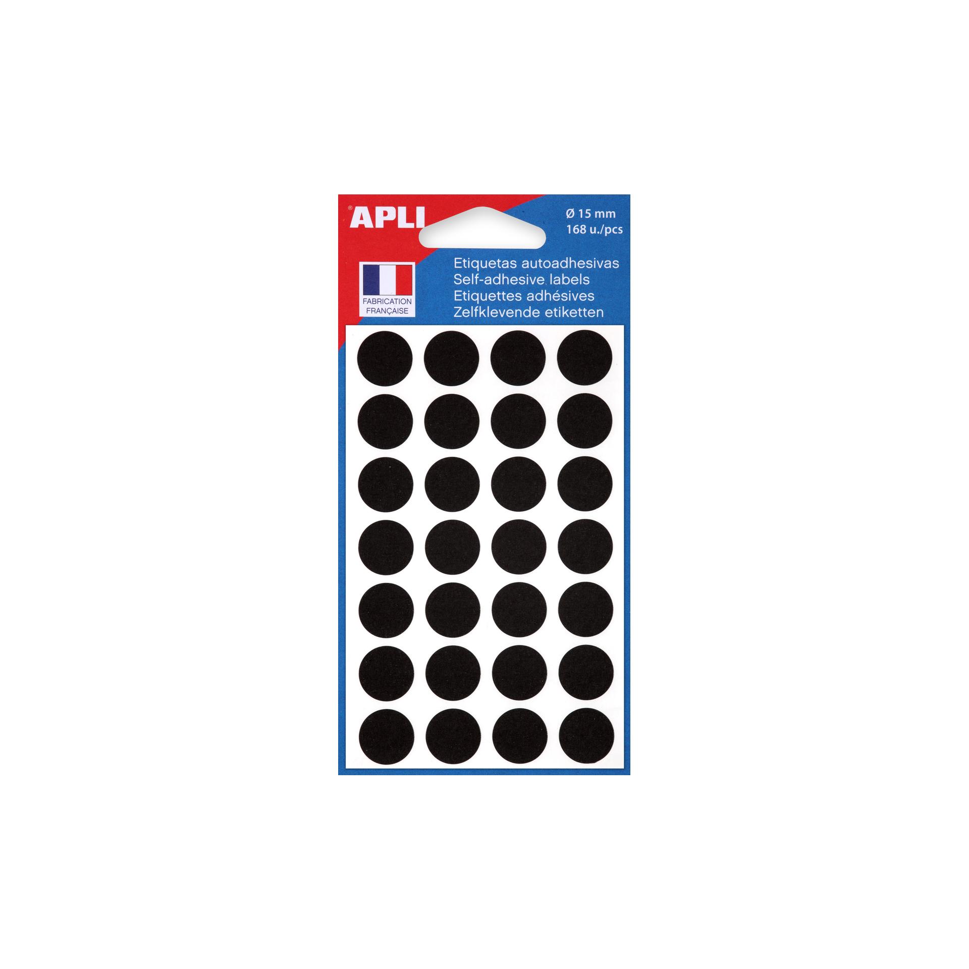 Pochettes de 6 feuilles de 28 pastilles diamètre 15 mm.