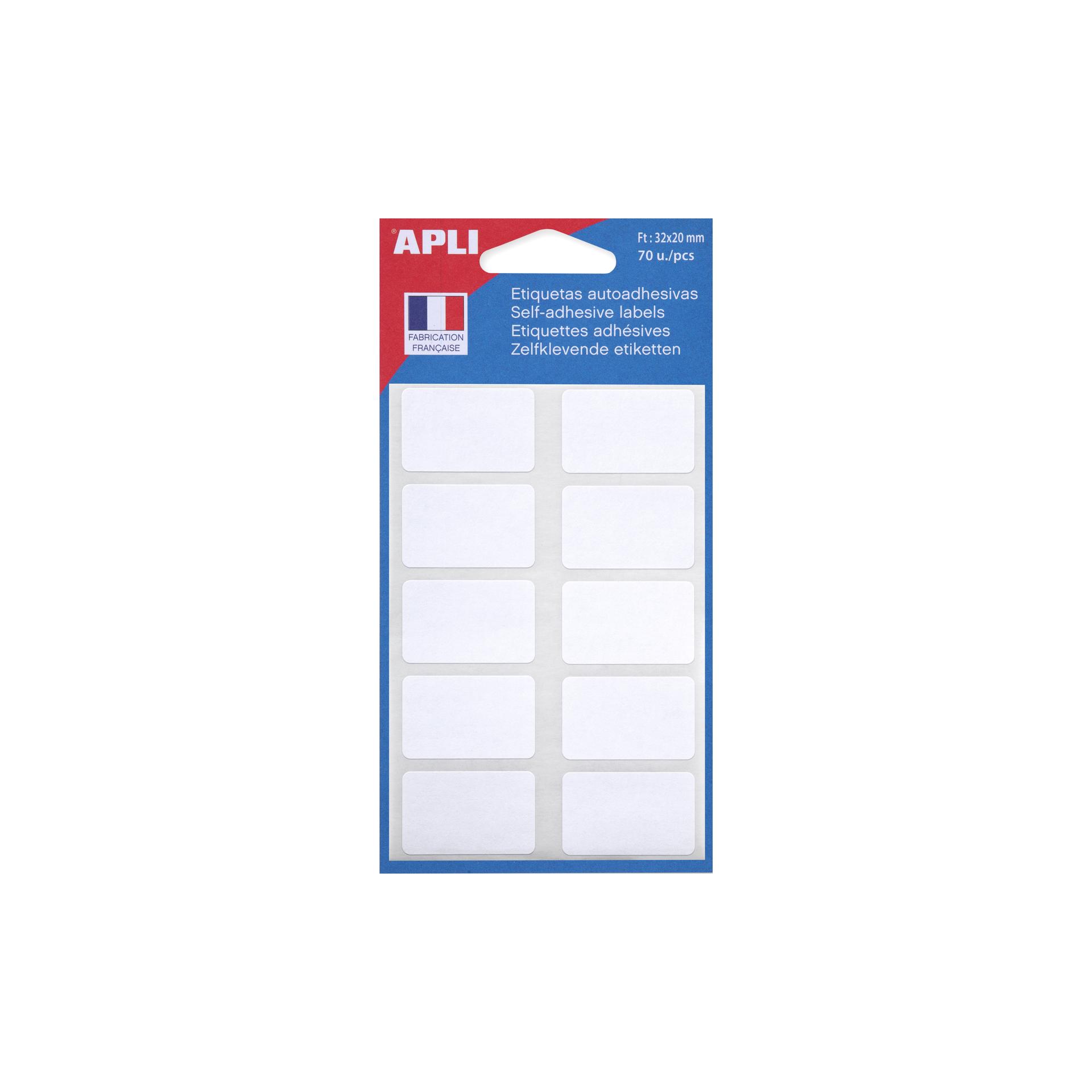 Étiquettes blanches bords arrondis adhésif permanent 32x 20 mm pour écriture manelle. Pochette de 70 étiquettes. Etiquetage rapide et efficace. Parfois , nous avons besoin d'un étiquetage rapide et efficace sans passer par l'imprimante. Pour cela, APLI propose des étiquettes idéales pour y écrire avec un crayon, un stylo bille (également à encre gel) ou un marqueur permettant un séchage rapide de l'encre. Certifitées FSC.