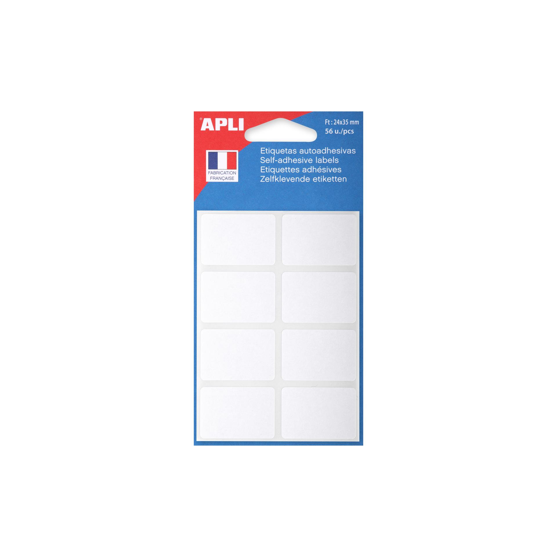 Étiquettes blanches bords arrondis adhésif permanent 24x 35 mm pour écriture manelle. Pochette de 56 étiquettes. Etiquetage rapide et efficace. Parfois , nous avons besoin d'un étiquetage rapide et efficace sans passer par l'imprimante. Pour cela, APLI propose des étiquettes idéales pour y écrire avec un crayon, un stylo bille (également à encre gel) ou un marqueur permettant un séchage rapide de l'encre. Certifitées FSC.