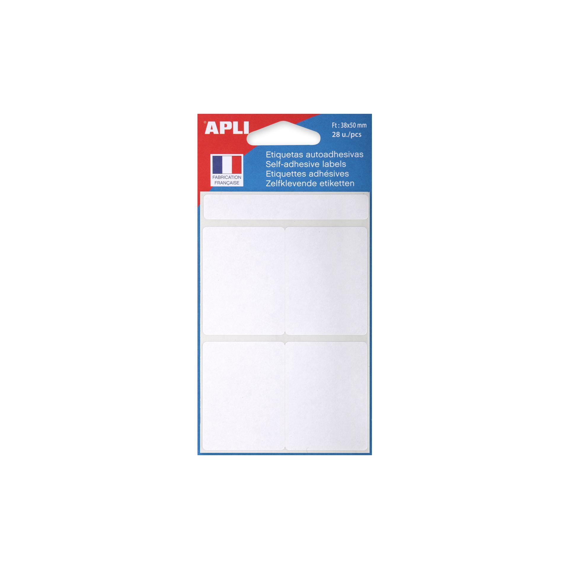 Étiquettes blanches bords arrondis adhésif permanent 38x 50 mm pour écriture manelle. Pochette de 28 étiquettes. Etiquetage rapide et efficace. Parfois , nous avons besoin d'un étiquetage rapide et efficace sans passer par l'imprimante. Pour cela, APLI propose des étiquettes idéales pour y écrire avec un crayon, un stylo bille (également à encre gel) ou un marqueur permettant un séchage rapide de l'encre. Certifitées FSC.