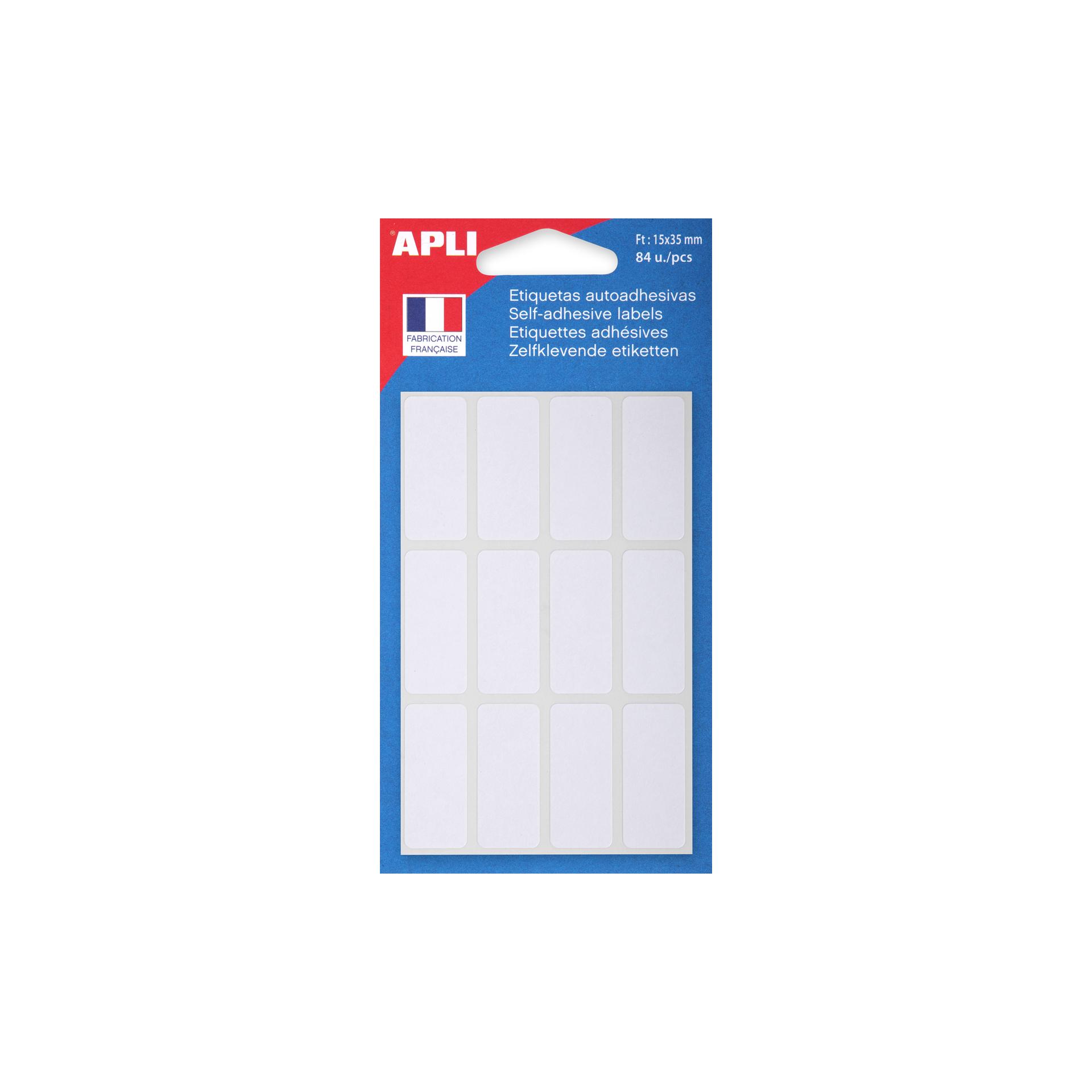 Étiquettes blanches bords arrondis adhésif permanent 35x 15 mm pour écriture manelle. Pochette de 84 étiquettes. Etiquetage rapide et efficace. Parfois , nous avons besoin d'un étiquetage rapide et efficace sans passer par l'imprimante. Pour cela, APLI propose des étiquettes idéales pour y écrire avec un crayon, un stylo bille (également à encre gel) ou un marqueur permettant un séchage rapide de l'encre. Certifitées FSC.