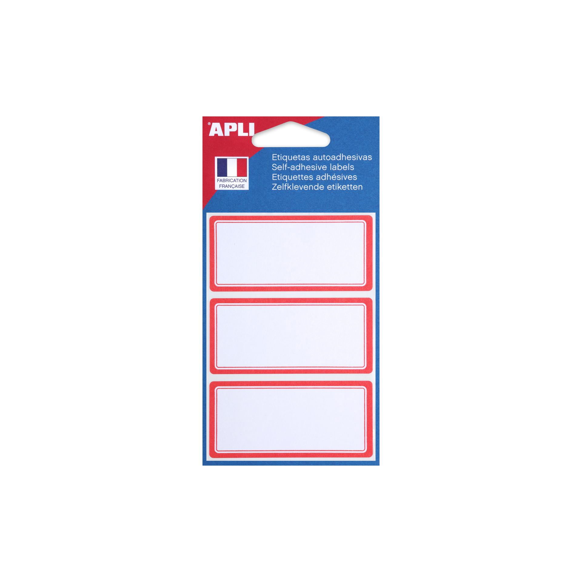 Étiquettes scolaires cadre rouge adhésif permanent 34x75 mm. Pochette de 24 étiquettes.