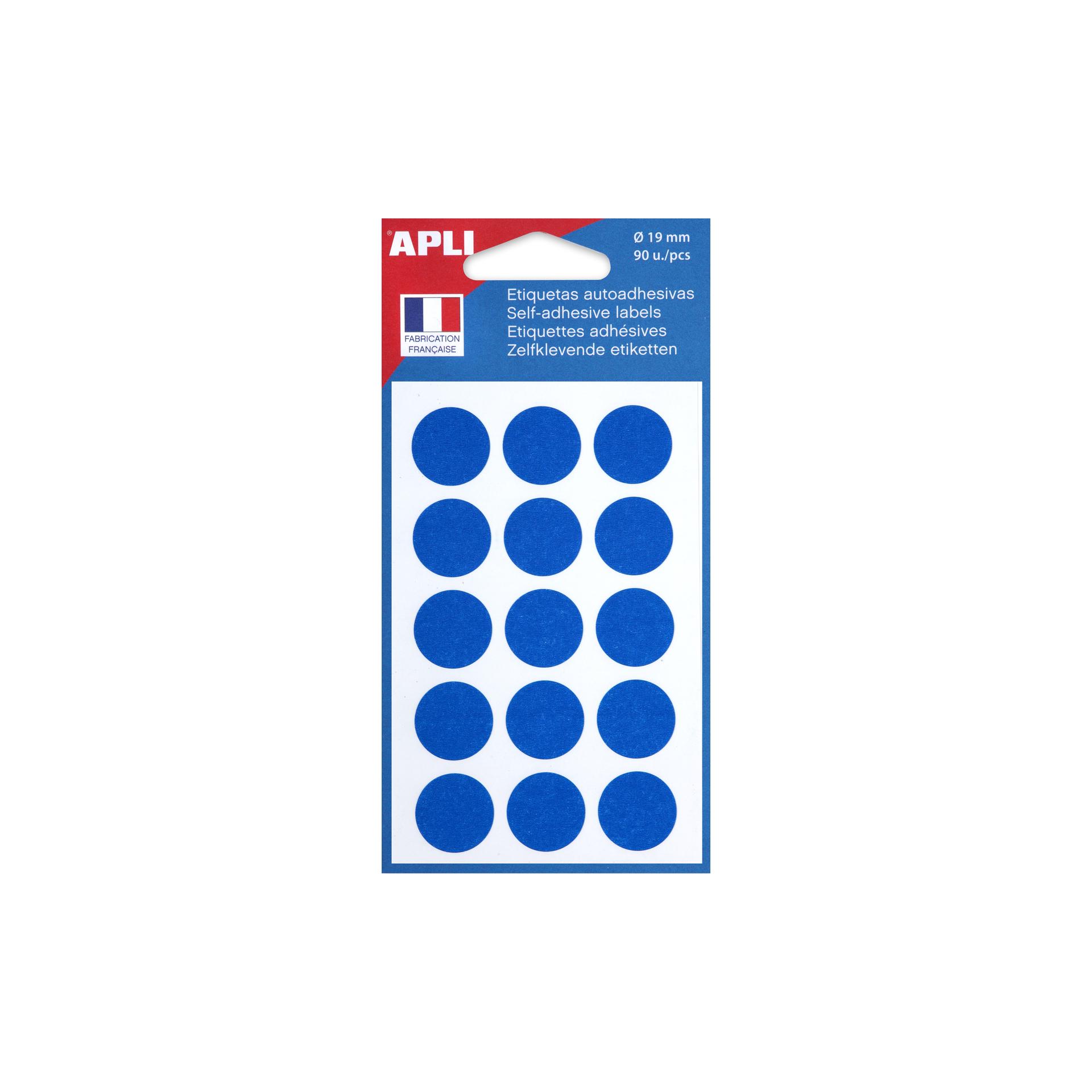 Pochettes de 6 feuilles de 15 pastilles diamètre 19 mm.