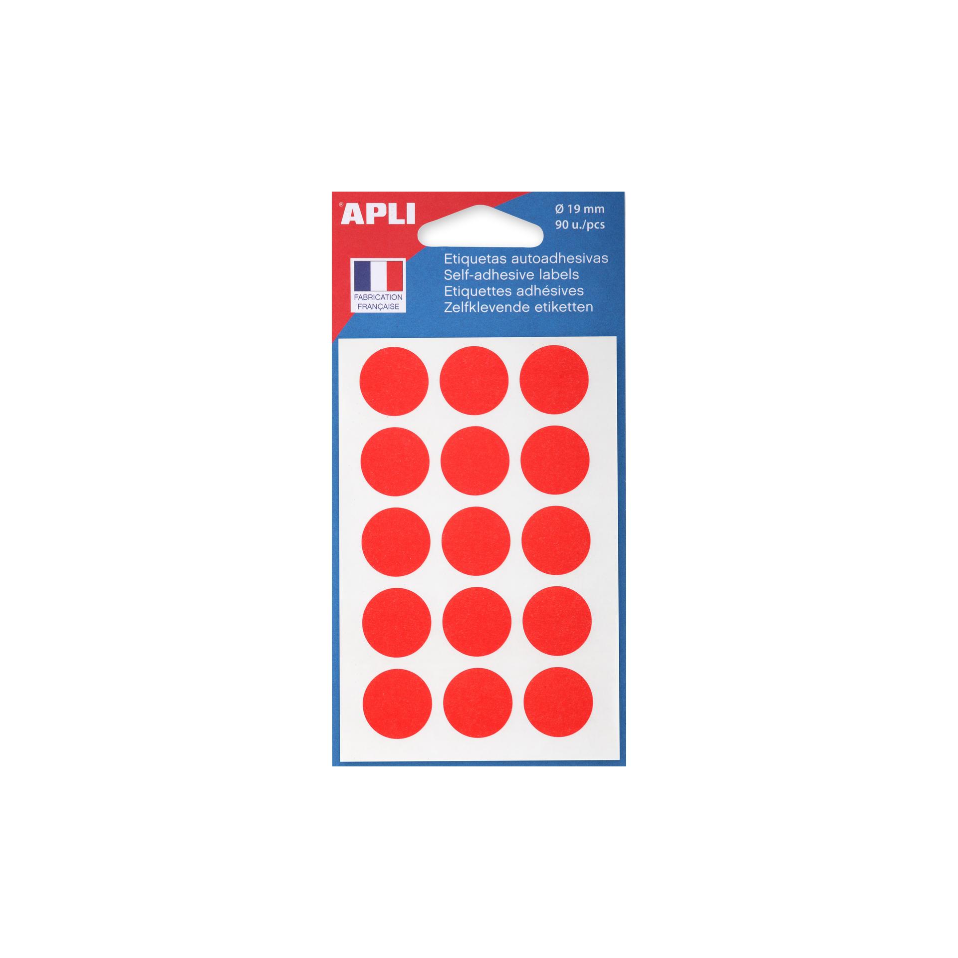 Pochettes de 6 feuilles de 15 pastilles diamètre 19 mm.