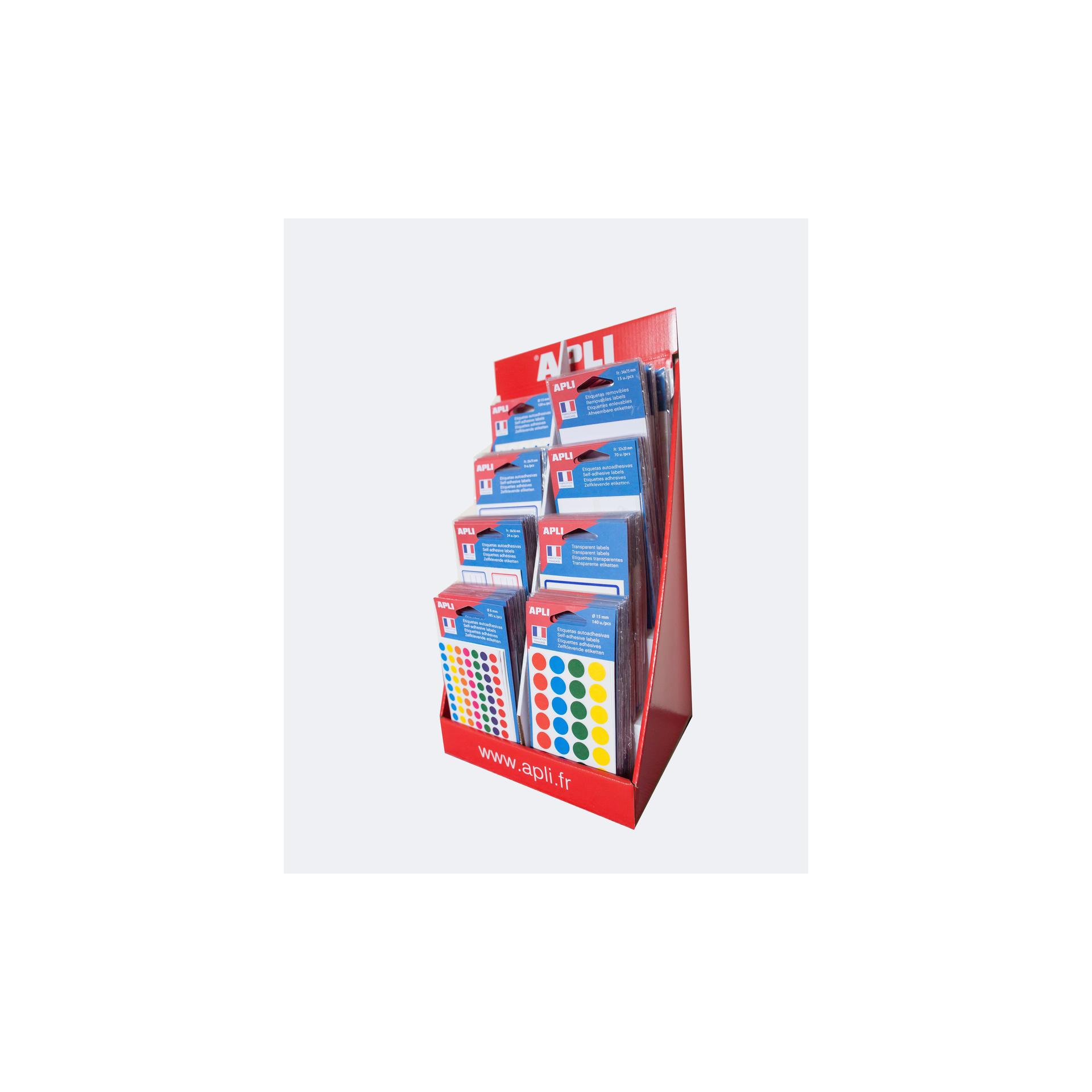Présentoir de 160 pochettes d'étiquettes blanches ou de couleurs assorties. Etiquetage rapide et efficace. Parfois , nous avons besoin d'un étiquetage rapide et efficace sans passer par l'imprimante. Pour cela, APLI propose des étiquettes idéales pour y écrire avec un crayon, un stylo bille (également à encre gel) ou un marqueur permettant un séchage rapide de l'encre.