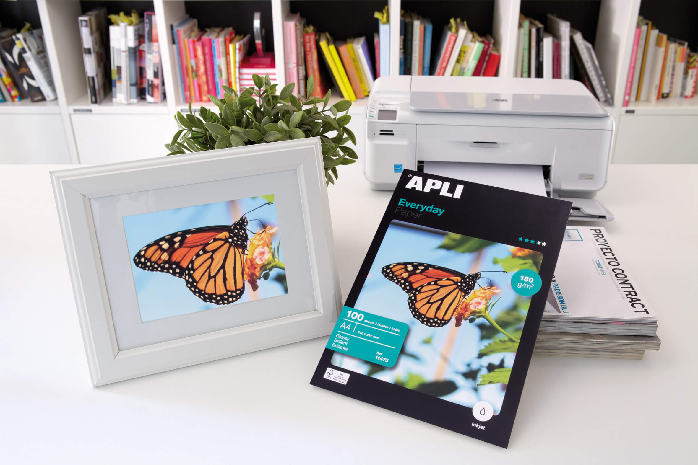 Papier photo Everyday format A4. Papier de 180 g/m² avec finition brillante. Chaque paquet contient 100 feuilles.