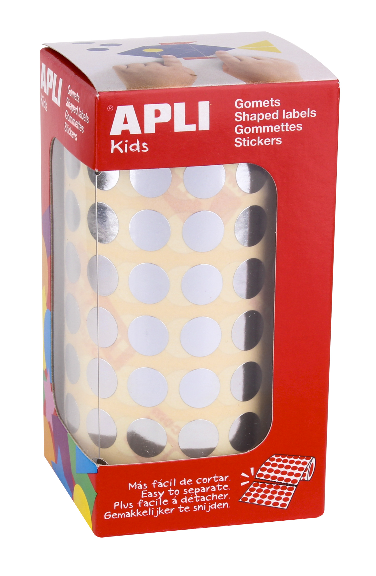 Rouleau de gommettes rondes de diamètre Ø 10,5 mm de couleur argent métallisé avec un adhésif permanent. Chaque rouleau contient 59 feuilles prédécoupées pour une séparation facile, un total de 5192 gommettes par rouleau.