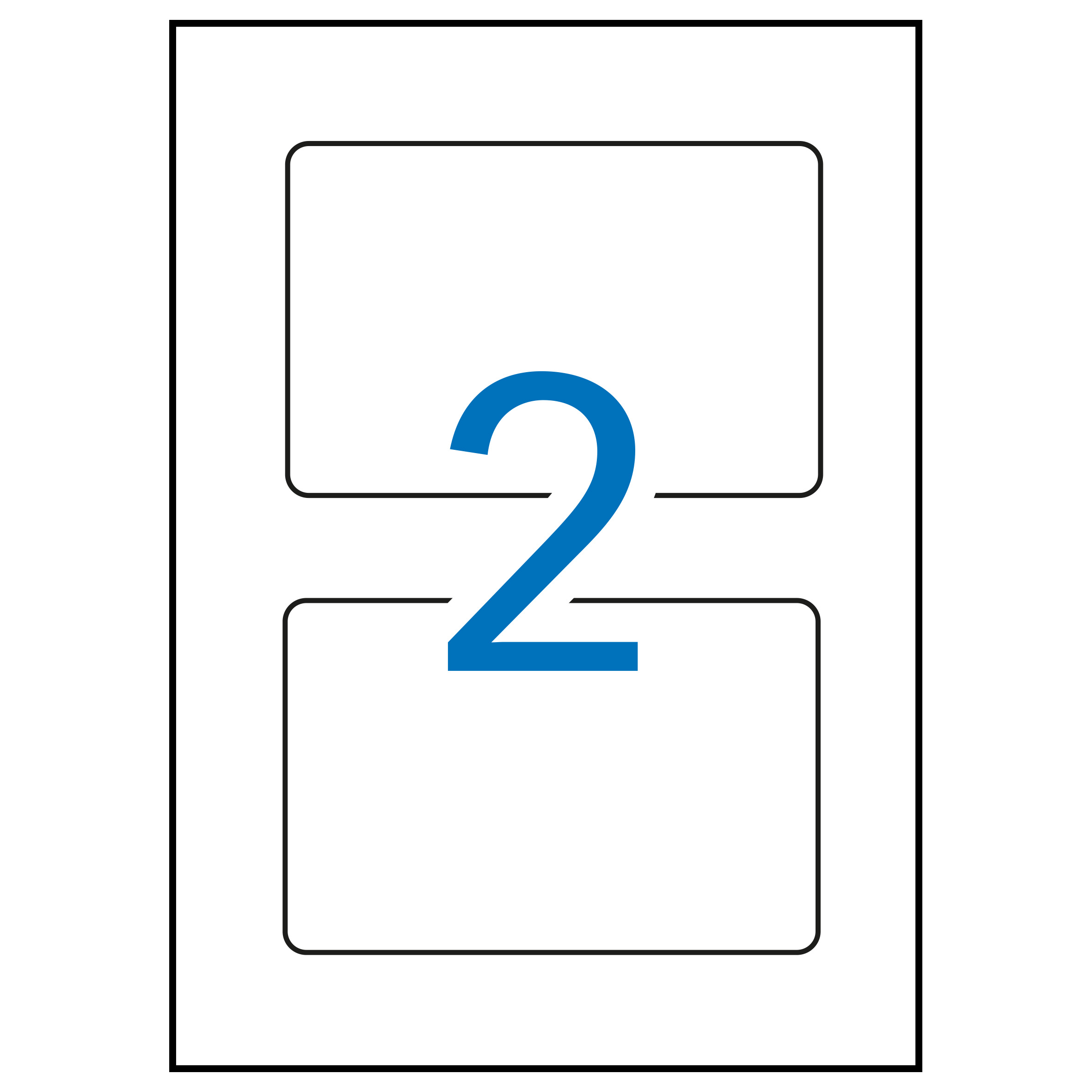 Etiquettes blanches plastifiées bords arrondis dimensions 150,0 x 100,0 mm avec un adhésif permanent. Paquet de 10 feuilles (20 étiquettes).