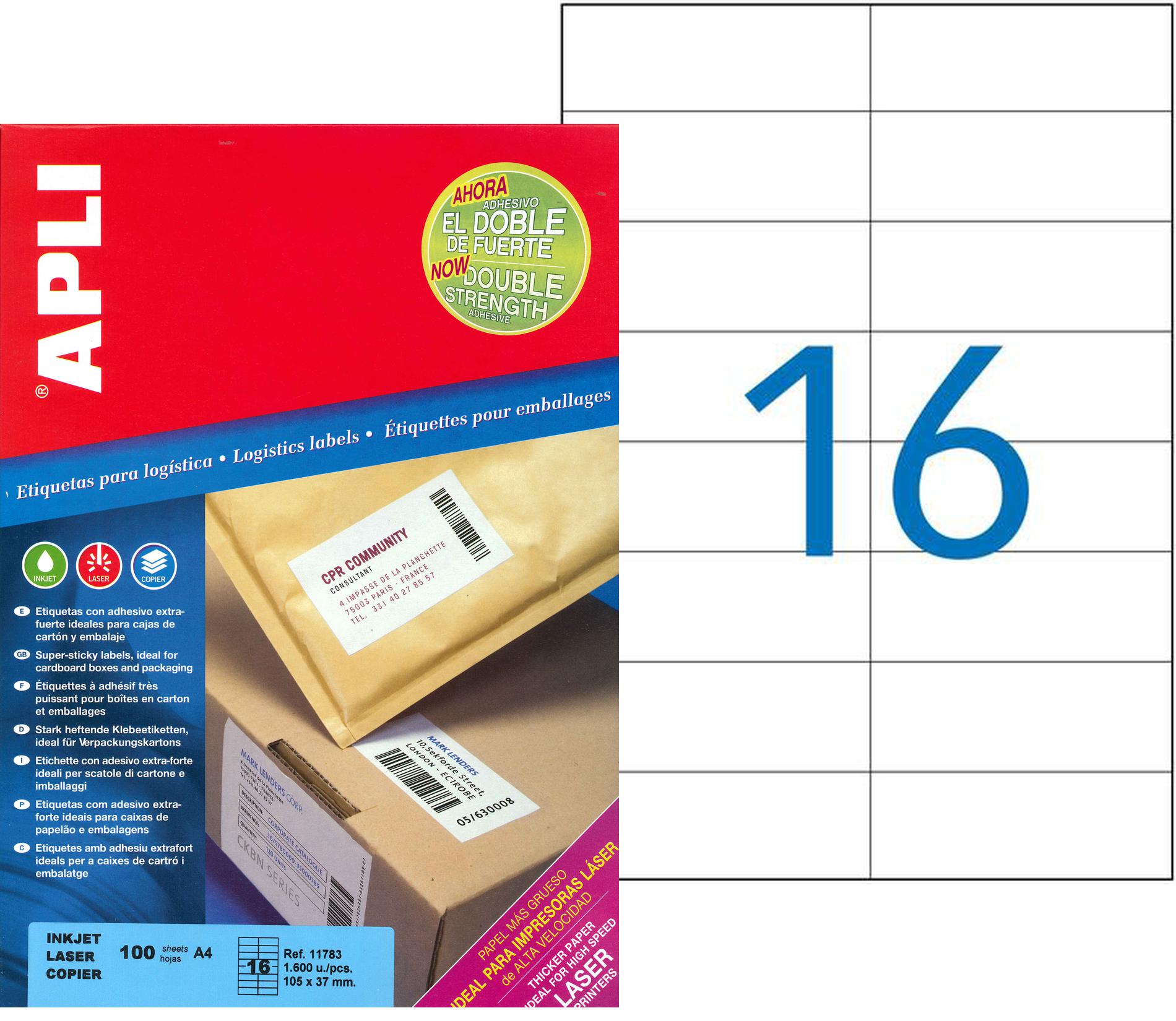 Etiquettes avec adhésif extra-fort, parfaits pour remplacer les étiquettes normales qui n'adhèrent pas aussi bien: sur les surfaces rugueuses, les murs, les cartons etc. Excellente qualité d’impression compatibles avec les imprimantes ink jet, laser.