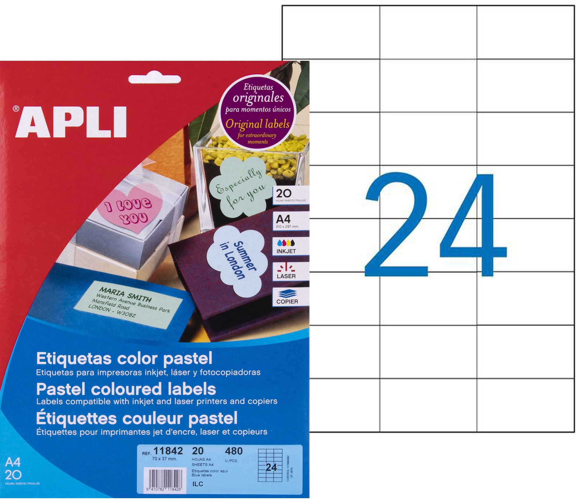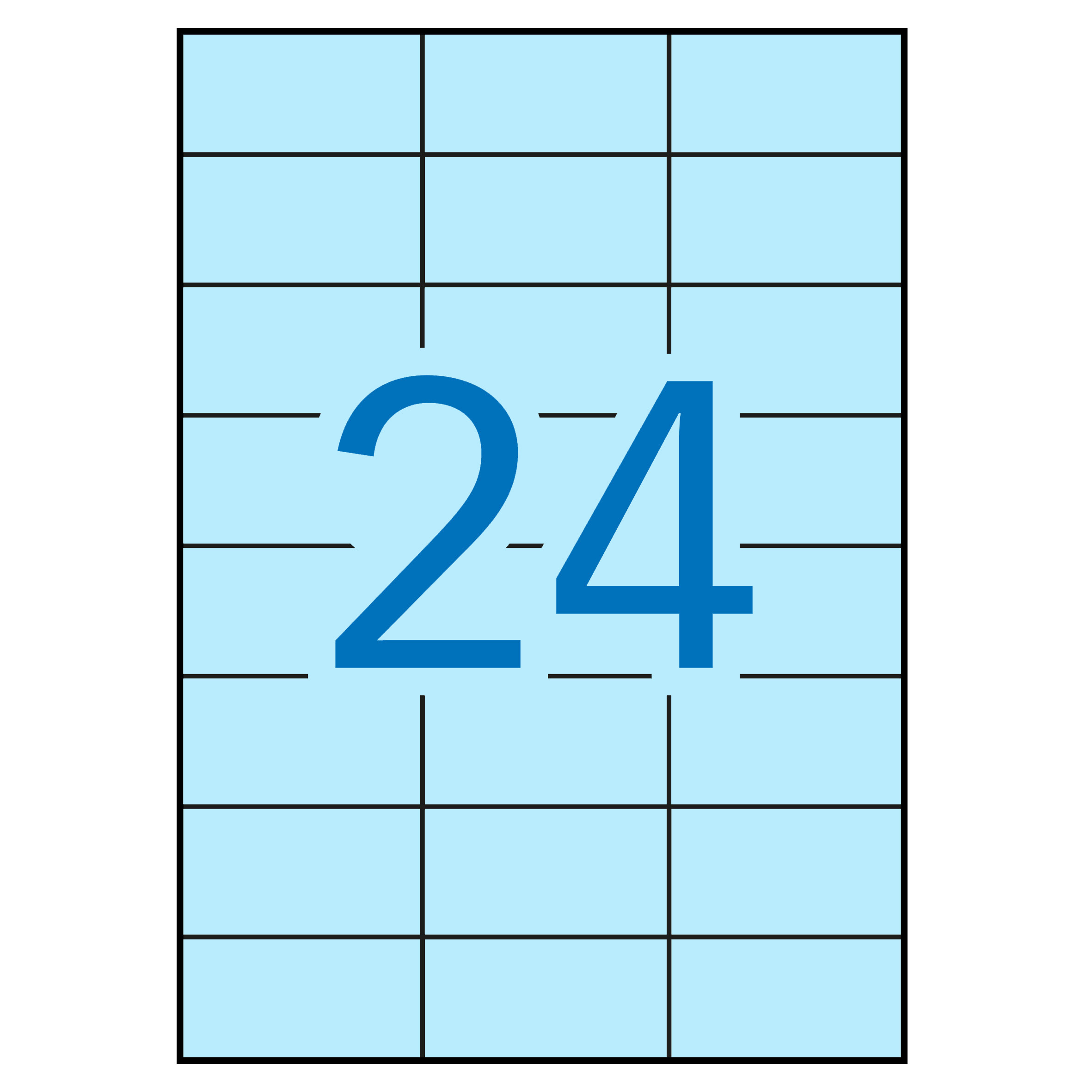 Etiquettes bleues pastel coins droits dimensions 70,0 x 37,0 mm avec un adhésif permanent. Paquet de 20 feuilles (480 étiquettes).