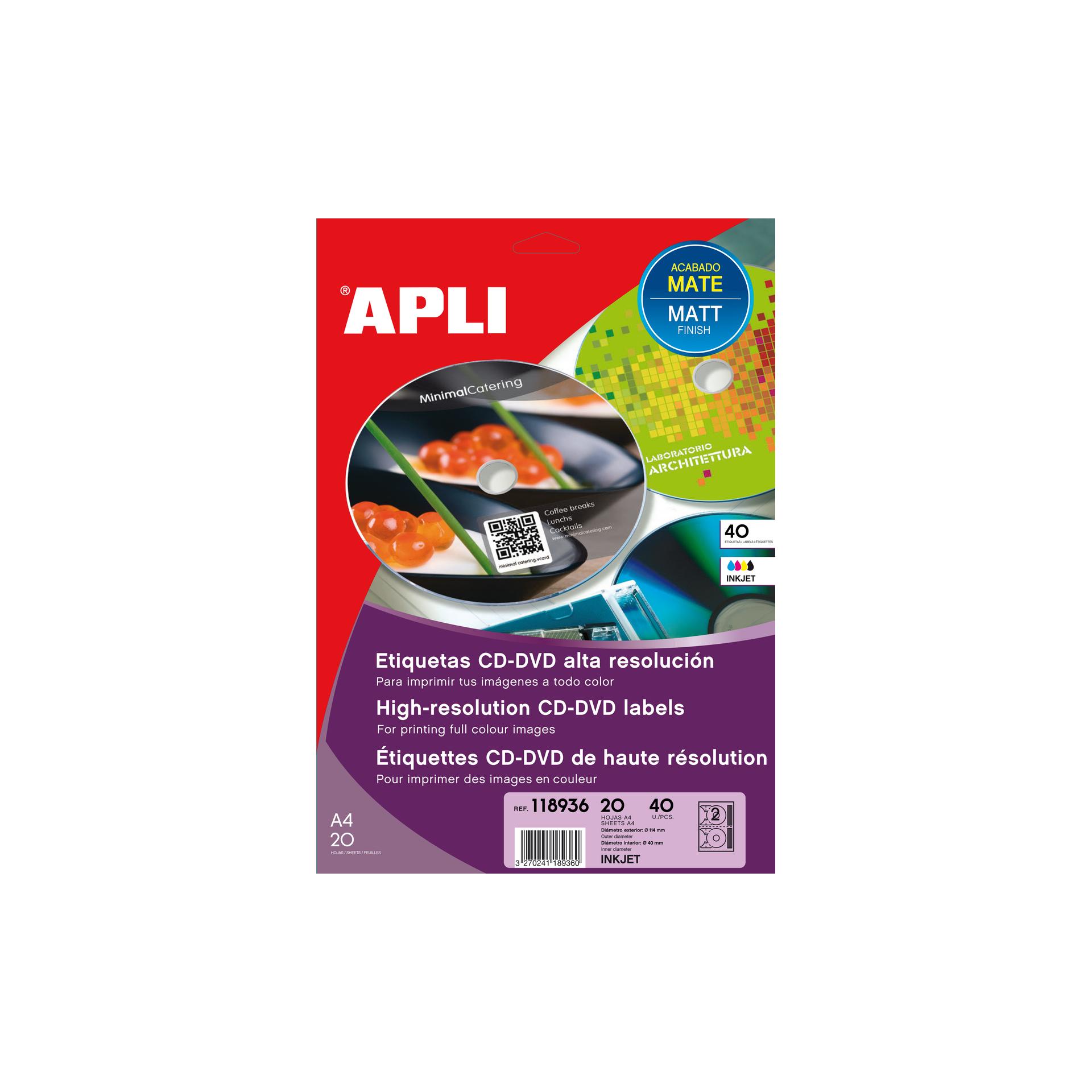 Poch. 40 étiquettes CD/DVD photo mat