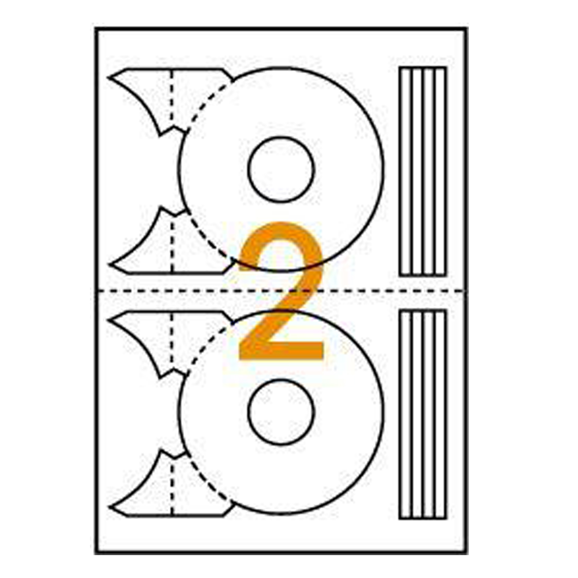 Étiquettes CD-DVD Maxi qui couvre toute la surface du CD : diamètre extérieur 117,5 mm et 18 mm de diamètre intérieur.